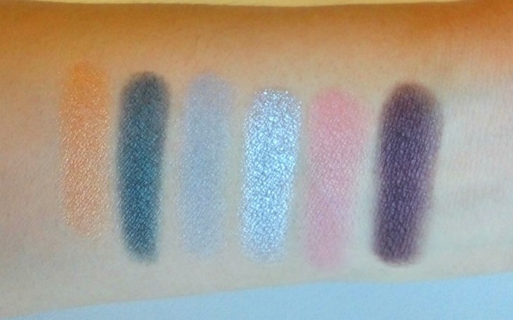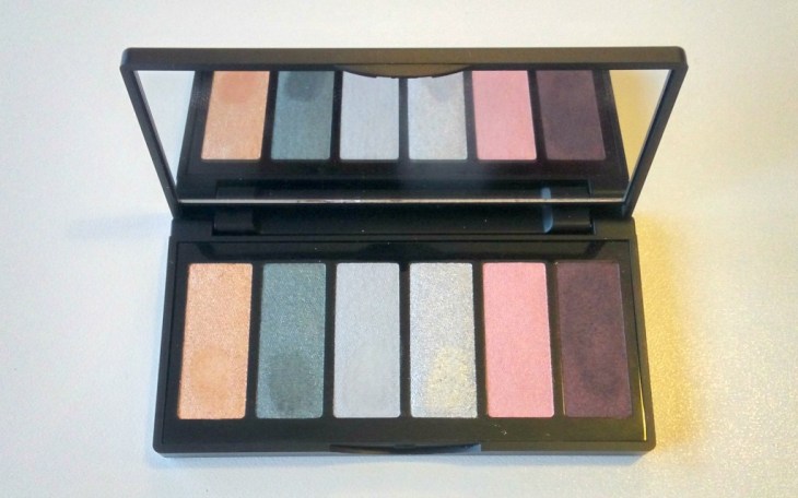 I love the packaging – it’s housed in a very sleek and thin black plastic palette with a very good size mirror; I think it’s a perfect travel palette. There’s 6grams of product and 6 shades in the palette, which means each shade is about 1gram. For comparison, each shade in the Urban Decay palette is 1.3grams, so it’s not that far off. The 6 shades included are gold, forest green, light green, silver, pink and burgundy. They are all metallic, shimmery or satin; there are no mattes but this is a party palette so I think it’s perfectly fine.