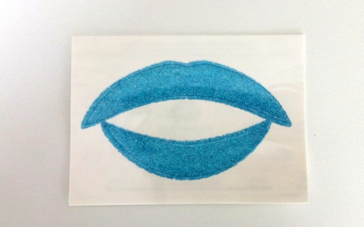After cutting it to fit your lips, peel the plastic film off the applique and put the sticky side on the lips while keeping your mouth in a wide “Ahh” shape. This is followed by soaking the paper backing in water using a wet cotton ball until the paper starts to slide off, then sealed and smoothed with a generous amount of water using the cotton swab.