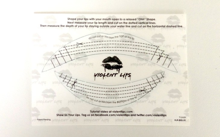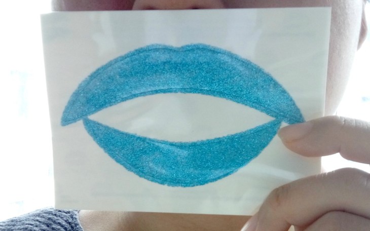 It comes in a cupboard packaging, basically like a cardboard envelope. Each applique has a piece of paper backing, and a plastic sheet cover on top. Before application, you’re supposed to measure your lips and cut along the lines as indicated on the paper backing so that it fits well. Now I don’t know about you, but I find it incredibly difficult to measure my lips against a piece of paper so I really just guessed it.