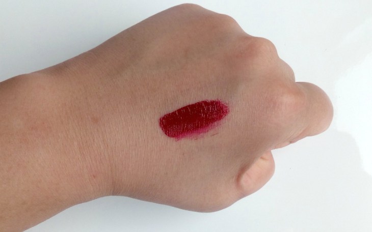 The swatches above are only with one layer – Cranberry Stiletto is full coverage. That said, getting an even application is incredibly important because there’s no room for mistake given how high coverage it is but it is also very hard to apply an even layer. Too thick and it bleeds, too thin and it will look patchy. If you accidentally draw a bad line on your lips, the rest of the makeup is pretty much ruined because it’s very difficult to alter it.