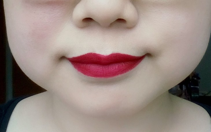 I find that the lasting power to be much higher for Cranberry Stiletto than for Versailles. This lasted 4 to 5 hours on me without food and left behind a light stain, and it becomes a few shades lighter with a light lunch but doesn’t last through dinner. It might also be because it’s a very dark shade so I make more effort to have a full even application each time, as compared to Versailles. However, I do not see the “all day coverage” that it claimed to have.