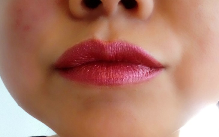 Personally, I really don’t like the shade; I don’t find metallic shades flattering on my skin at any time and this was not an exception. It looks really odd and I feel really weird with it; I can’t find any occasion to wear it at all. It doesn’t wear off nicely – it leaves behind weird patches of metallic lipstick which already looked weird when it was not patchy. It’s such a shame because I really find it to be one of the more comfortable liquid lipsticks to wear.