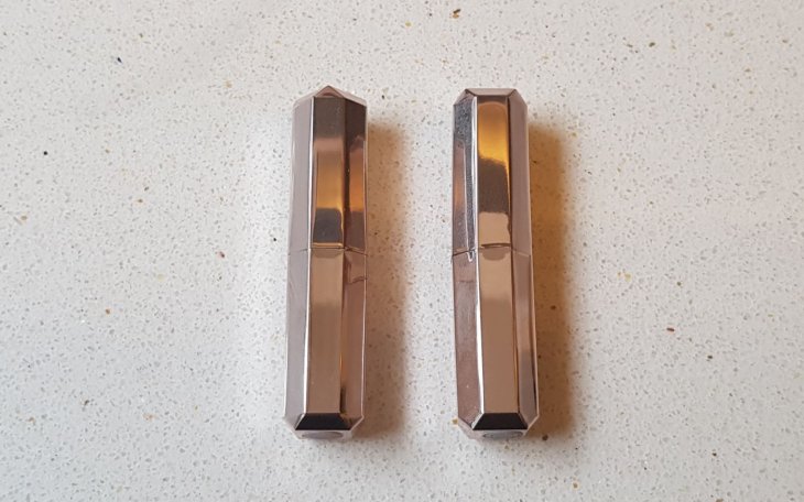 I got the Fenty Beauty Two Lil Mattemoiselles from Sephora, and they retail for US$19 usually; there’s 2 mini lipsticks that are 1g each. They are quite small but their shiny rose gold light plastic lipstick tube makes them look bigger – there’s about 1cm of lipstick when you turn the whole lipstick up. Both lipsticks are from the permanent range.