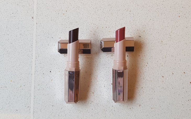 For matte lipsticks, these feel absolutely lightweight and very comfortable. They apply very smoothly and feels rather thin. However, with the comfort, I find that some staying power is lost because there’s quite a bit of slip and thinness to the lipstick which makes it so comfortable in the first place. Griselda lasted longer on my lips, about 4 hours with a slight stain, while Spanked only made it through about 2 to 3 hours with no staining.